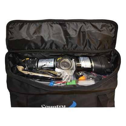 La mejor manera de transportar y mantener todos sus accesorios y su calentador de agua Country Comfort en un solo lugar. con nuestra NUEVA bolsa de transporte de accesorios 100% impermeable con asas de transporte y espacio de almacenamiento adicional.